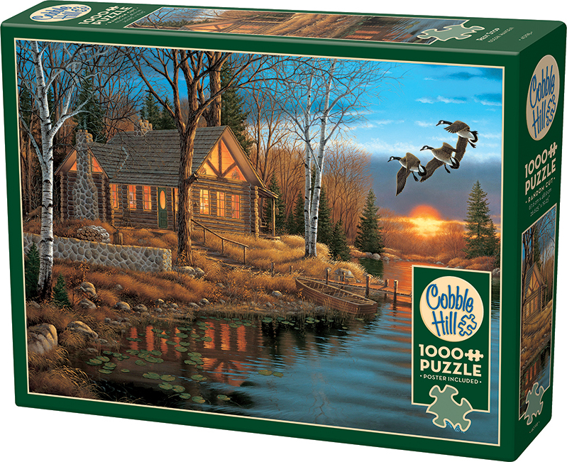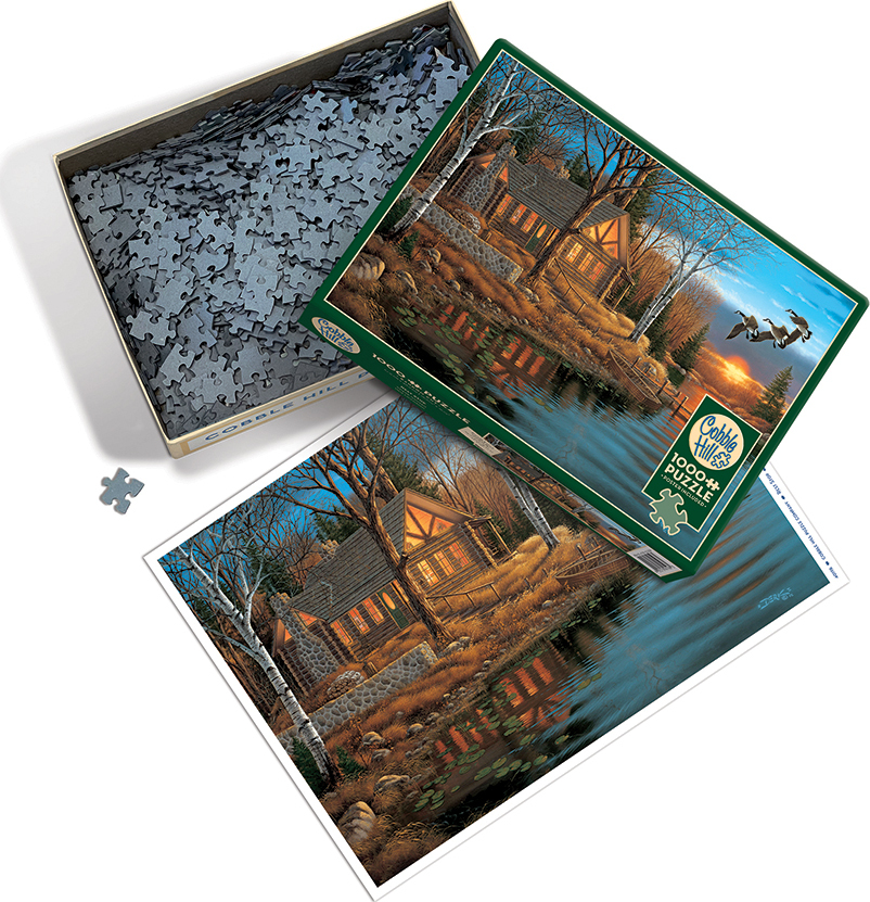 The perfect Rest Stop is a lake cabin at sunset. All it needs is a cozy fire burning in the stone chimney. A 1000 piece puzzle for any season.