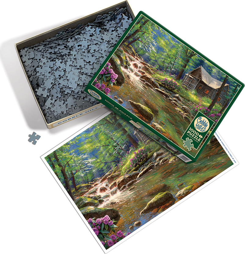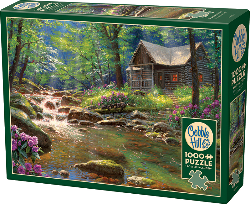 Escape into the wilderness with a trip to the "Fishing Cabin". Wake up to the soothing sounds of rushing water as the creek glistens in the morning sun. Be sure to catch the fish swimming upstream in this 1000 piece puzzle!