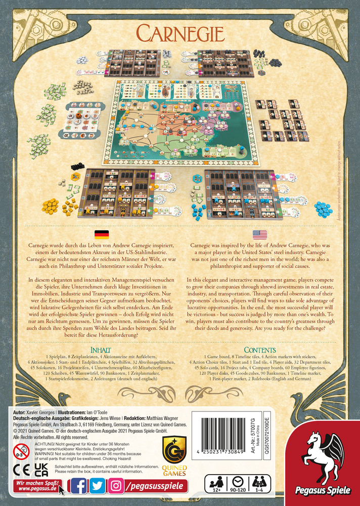 Elegant and interactive management game from Quined Games. Inspired by the life of Andrew Carnegie, a Scottish-born American industrialist and philanthropist. In Carnegie, players will recruit employees and expand their businesses by investing in real estate, producing goods, developing transport technology, and creating transport chains across the United States. Perhaps they will even become illustrious benefactors who contribute to the country's greatness through their deeds and generosity!